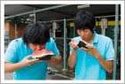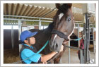| 入学当初は、競走馬を引退した乗用馬をベースに、一人ひとりに自分の担当馬が与えられます。日々、馬のお世話を通じて、日々変化する馬の健康状態などを把握していきます。自分の担当馬を持つことで、その馬に愛情がわき、それぞれの役割と責任を担い本校に在籍する約100頭の馬たちが、しっかり行き届いた徹底した管理が行われています。また、徐々に生徒たちのレベルに向上にあわせて、管理の難易度が高まる「現役競走馬」や「引退直後の競走馬」なども管理していきます。 |